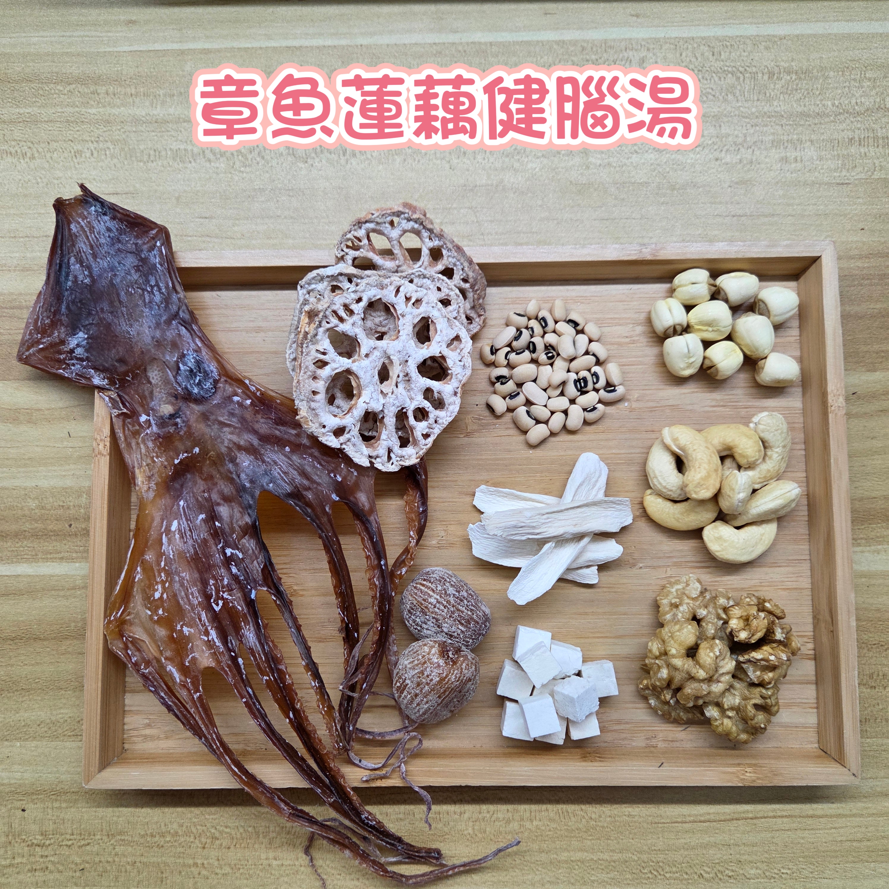 [材料]章魚、蓮藕乾、白蓮子、眉豆、茯苓、鐵棍淮山、腰果、核桃、蜜棗