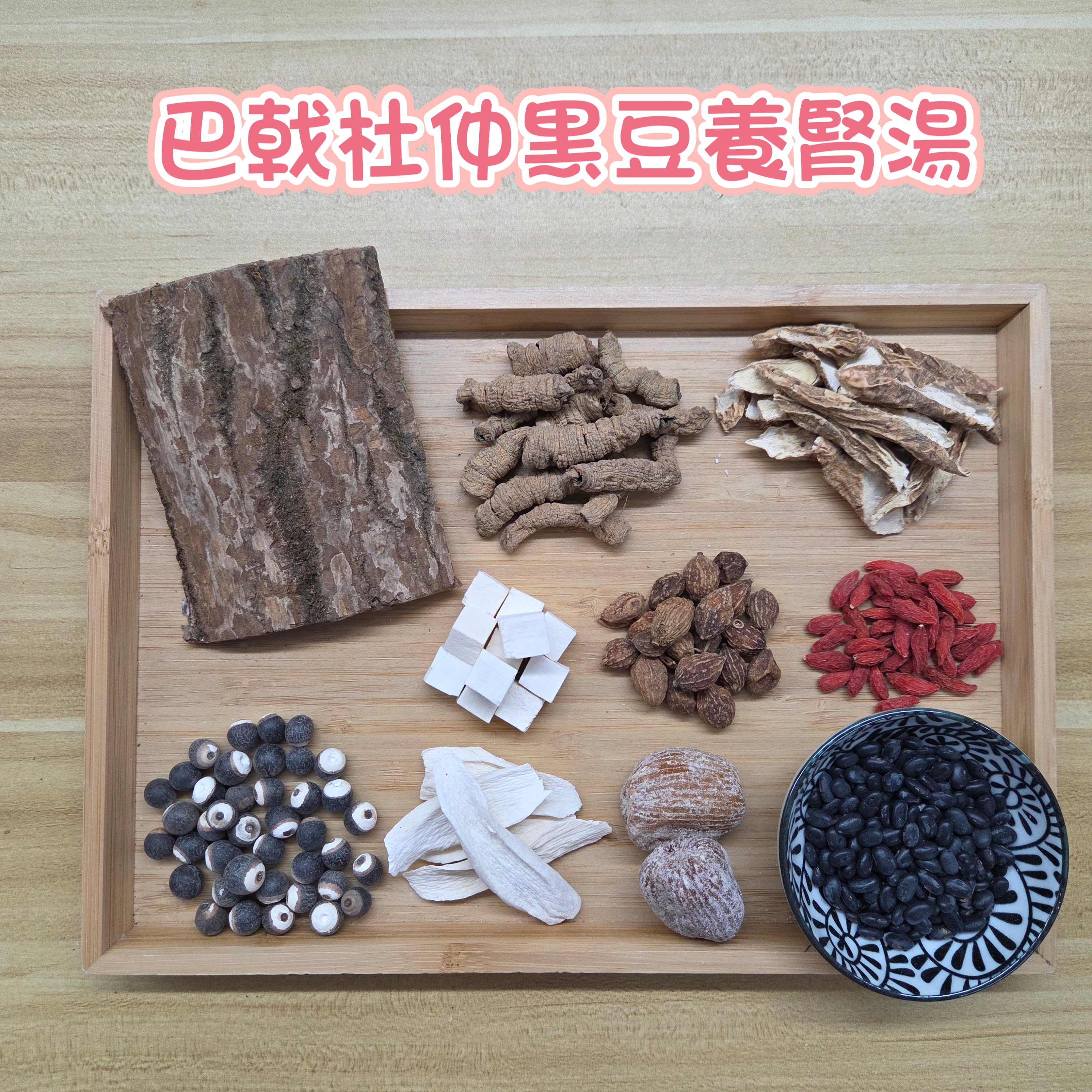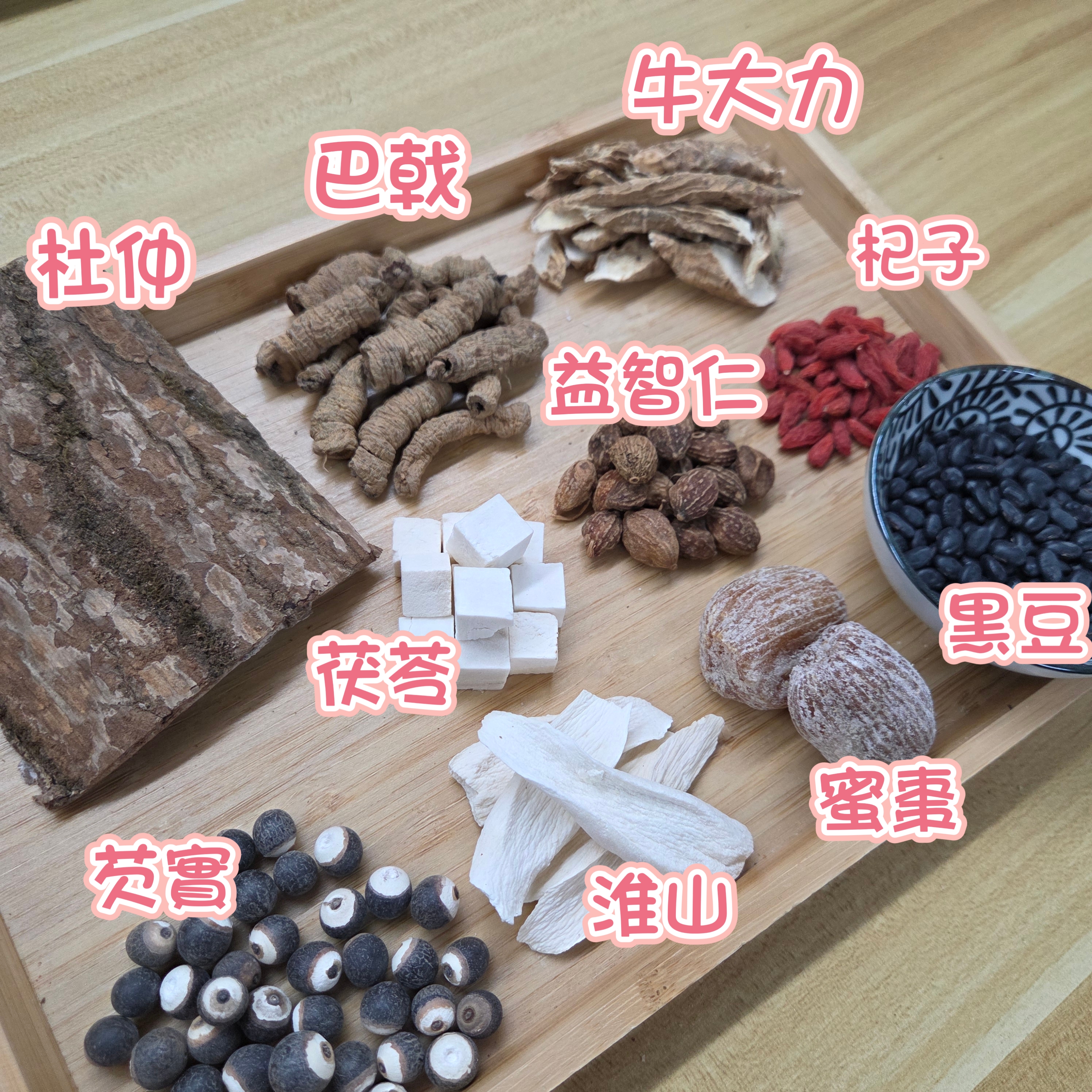 【材料】巴戟天、杜仲、芡實、茯苓、益智仁、牛大力、鐵棍淮山、黑豆、杞子、蜜棗